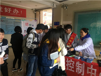 当天上午,青年志愿者们通过悬挂宣传横幅、摆放宣传展板、散发宣传单和宣传折页等方式,耐心细致地向师生宣传了结核病防治方法,免费政策以及相关结核病防治知识。“学生学习压力大,如果平时没好好锻炼身体易导致机体免疫力降低,加上因为上课、住宿等集体生活,容易造成学生之间的疾病传播,很容易发生学校群体性结核病。我们希望通过宣传活动,让大家了解结核病的防治方法,让更多的人知道结核病并不可怕,是可以预防和治疗的。”安义县疾病控制中心,结防科科长刘五根表示。