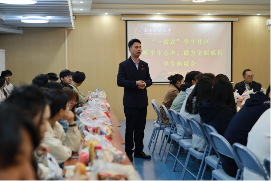 本网讯 高军 报道 为深入推进“一站式”学生社区育人阵地建设,畅通师生沟通渠道,精准对接学生成长发展需求,近日,南昌职业大学“一站式”学生社区专场座谈会在社区多功能活动室圆满举行。学校学生事务部副部长许强主持会议,各学院学生代表、社区管理人员及相关职能部门负责人齐聚一堂,以“面对面”交流方式共话校园发展与成长困惑。