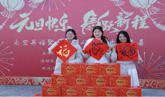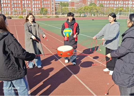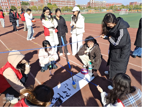 “神笔马良”项目前,师生们手牵彩绳同向发力,屏息凝神操控毛笔在宣纸上缓缓落笔,一个个歪扭却饱满的“福”字、一句句真挚恳切的新年寄语,既彰显了团队协作的智慧,更成为师生同心同行的温暖见证;“同心击鼓”区,众人围立鼓旁紧盯飞舞的彩球,脚步随鼓点灵活调整,一抛一接间,清脆鼓点与爽朗笑声共振,默契在互动中悄然升温;“写春联”摊位前墨香袅袅,同学们凝神挥毫,将对新年的美好期许融入笔墨丹青,一副副红彤彤的春联与福字,承载着最质朴的节日祝福,传递着浓浓的年味儿;“好运连排” 机打排球项目里,轻盈的彩球在球拍间来回穿梭,每一次精准传递、每一次默契配合都引来阵阵喝彩,快乐在赛场肆意流淌;接力跳绳环节更是将现场氛围推向高潮,金色绳影翻飞如织,参赛队员们默契接力、奋力跳跃,用蓬勃朝气与昂扬姿态,书写着对新年的活力向往。