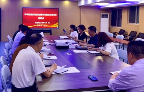 (学工处涂芳敏报道) 5月18日,学工部(处)在“一站式”学生服务社区一楼119室召开学平险捐资助教问题专项整治自查自纠工作专题会议。校党委委员、党委副书记詹鸿生出席会议,各学院学工书记出席参加会议,会议由学工部(处)负责人谢红岭主持。