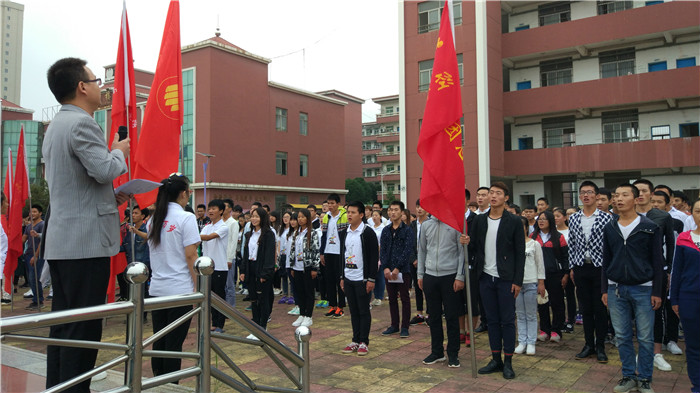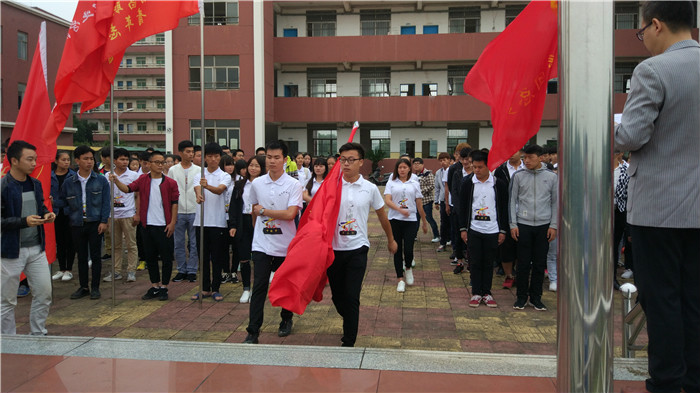 仪式上,管书记首先代表学院团委宣布本次升旗仪式正式开始。随后,身穿校服的国旗手们肩扛着五星红旗走到旗杆前,升国旗、奏国歌!全体师生向国旗行注目礼!接着,学生干部代表蒋凌峰在国旗下发言,他说,新中国成立67年来经历了无数的风风雨雨,中国人的心始终连在一起,未曾分离。作为一个新时代的大学生,作为南职的学生,应深知发奋学习、为国效力的重要性,必须树立起只争朝夕,为中华之崛起而读书的壮志。最后,杨永东副院长做了总结讲话,他指出,作为大学生,同学们要确立一个远大的志向,树立和培育正确的理想信念,对自己的未来要充满希望,要立志为自己的未来而努力奋斗。他强调,同学们要把自己的学习、成长同社会主义伟大事业、同祖国的繁荣富强紧密联系在一起,为振兴中华时刻准备着。他祝愿,光辉的五星红旗照耀着同学们前进的每一个脚步,同学们的梦想将会和中国梦一起实现!