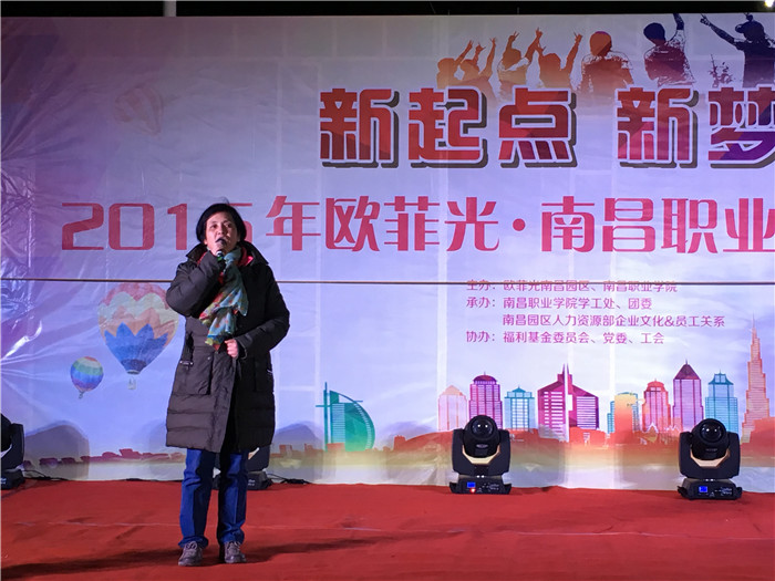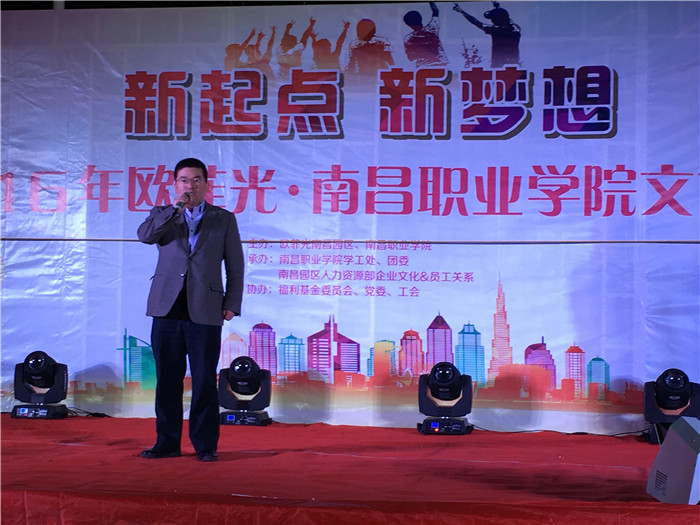致辞结束后,文艺演出正式拉开序幕,欧菲光艺术团谢超、吕勇以歌曲《信仰》获得了现场观众的阵阵掌声,我院在企实习生工程系数控GT1404班的王成同学演唱的歌曲《淘汰》也备受关注,学工处郭玉梦老师的《一杯美酒》更是将晚会推向了高潮,欧菲光艺术团吉他王子余瑞兴带来的吉他弹唱《我是一只小小鸟》也赢得了观众的好评。